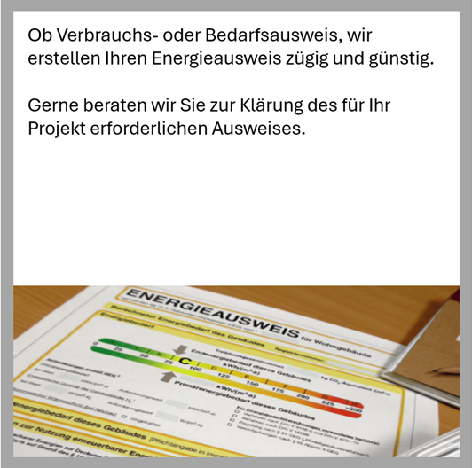 Sie erhalten die erforderlichen Leistungen zur energetischen Berechnung und Analyse Ihres Neubauvorhabens oder für Ihre Überlegungen zur Sanierung Ihres Bestandsgebäudes