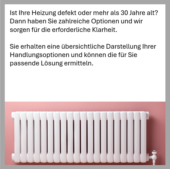 - Beratung zur zukunftsfähigen Heizungslösung und bei Heizungstausch.
